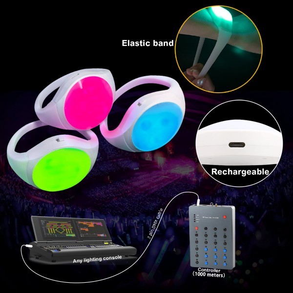 Led Light Bracelet Rechargeable Led Wristband Dmx Programmable Remote Control Led Wristband for Events